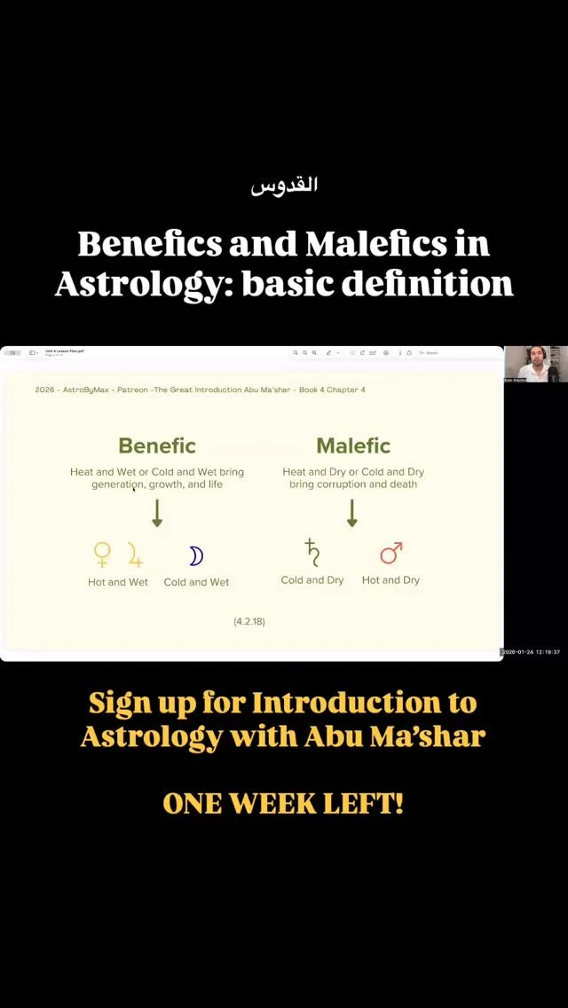 Learn the foundations of traditional astrology in the Medieval Islamicate world taught by Blaze-Maximus in a 10 week course through Abu Ma’shar’s Great Introduction to the Science of the Judgement of the Stars.